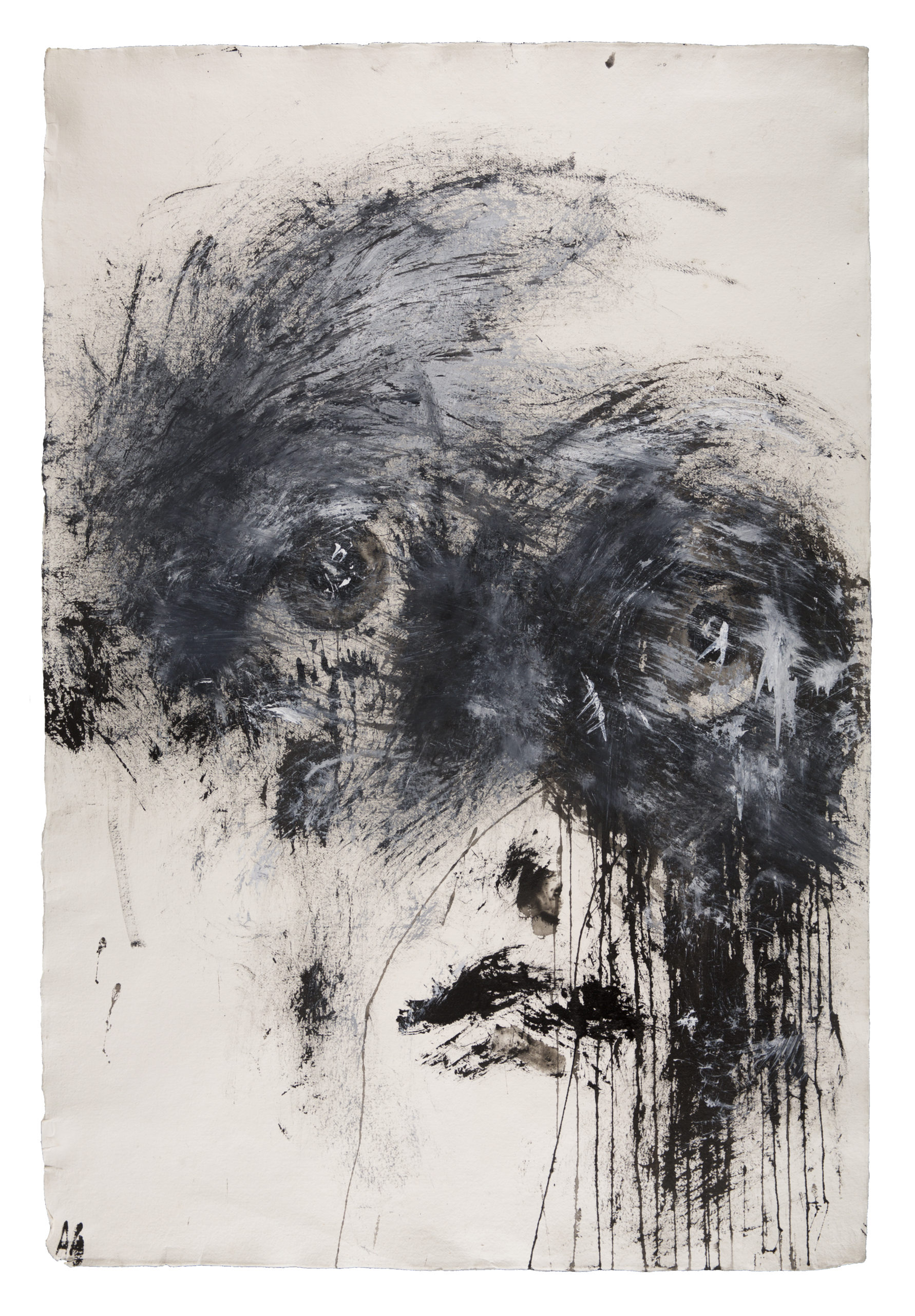 Anouk Grinberg, Visage au regard voilé, 2025, encre sur papier, 135 x 95 cm – Courtesy galerie GNG