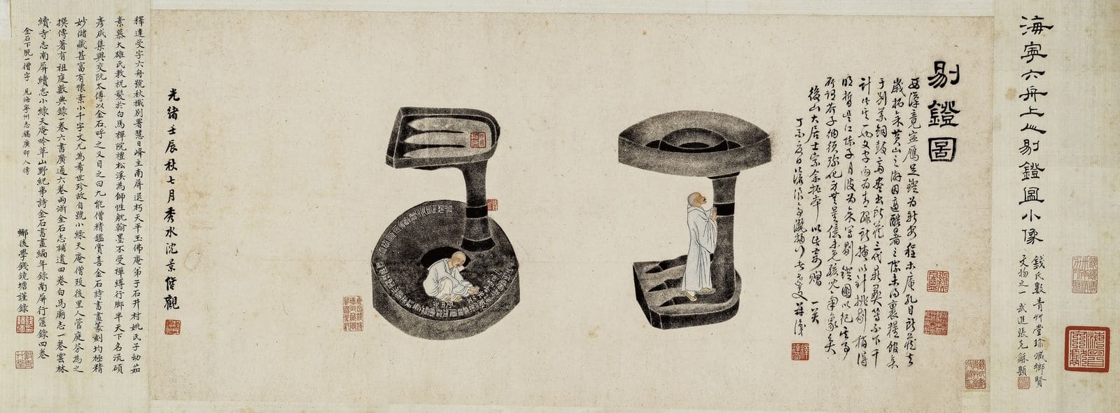 Cette riche culture matérielle donne un aperçu des échanges de savoirs dans les milieux érudits de la fin de la dynastie Qing (1644 -1911). Les développements dans leurs recherches, entre innovations techniques, comme l’estampage intégral (Quanxing ta), et incorporations esthétiques et poétiques sont également abordées.