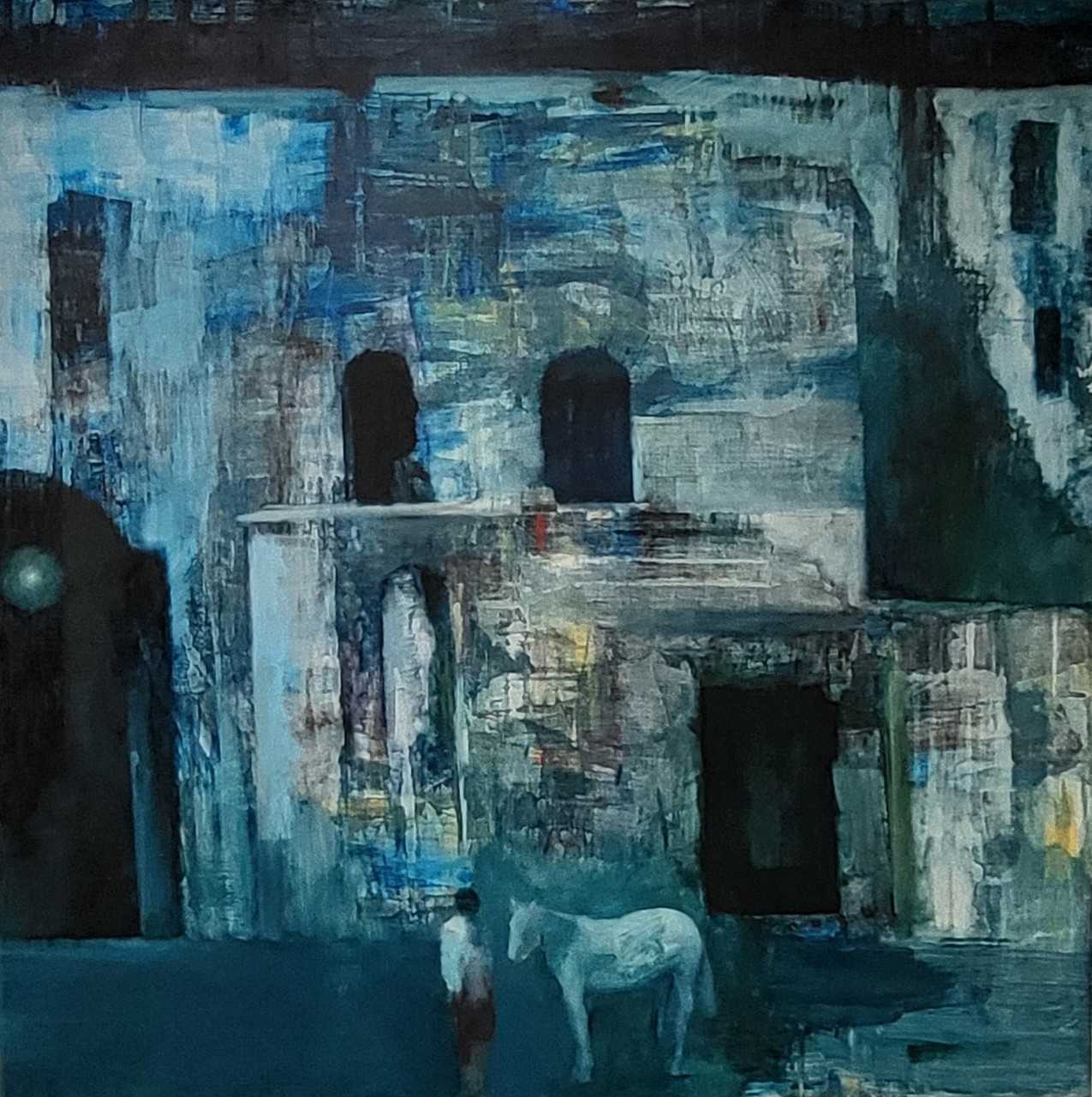 L’accrochage en cours montre ses peintures les plus récentes. Les réalisations exposées confrontent le spectateur à des décors variés, généralement situés dans des espaces urbains imaginés, en intérieur, ou en bord de mer.