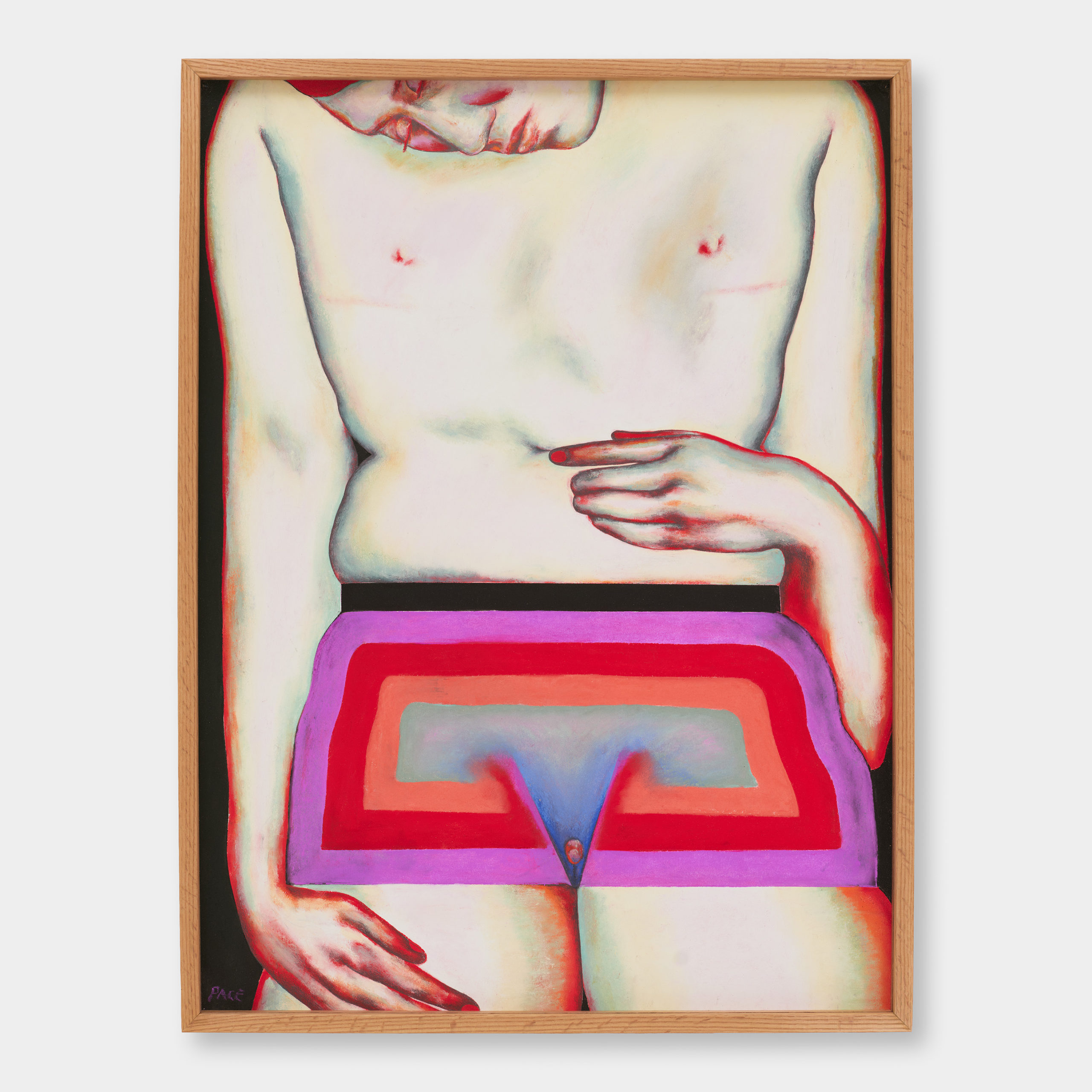 Pace Taylor (né.e en 1992) est un·e artiste étasunien·ne actif·ve depuis Kingston dans l’Etat de New-York. L’artiste a été formé·e à l’Université d’Oregon duquel iel ressort avec un BFA en arts digitaux en 2015. Iel travaille principalement au pastel et au crayon pour créer des portraits et scènes intimes stylisés. Ses travaux sont profondément queer et vulnérables, avec une mobilisation constante de couleurs vives telles que le rouge, l’orange et le rose. Leur usage est notable au vu des associations de la plupart de ces teintes à des visions où l’intensité des émotions représentées est parfois explosive. Ici, elles sont associées à des instants authentiques de partage, de fragilité et d’introspection.